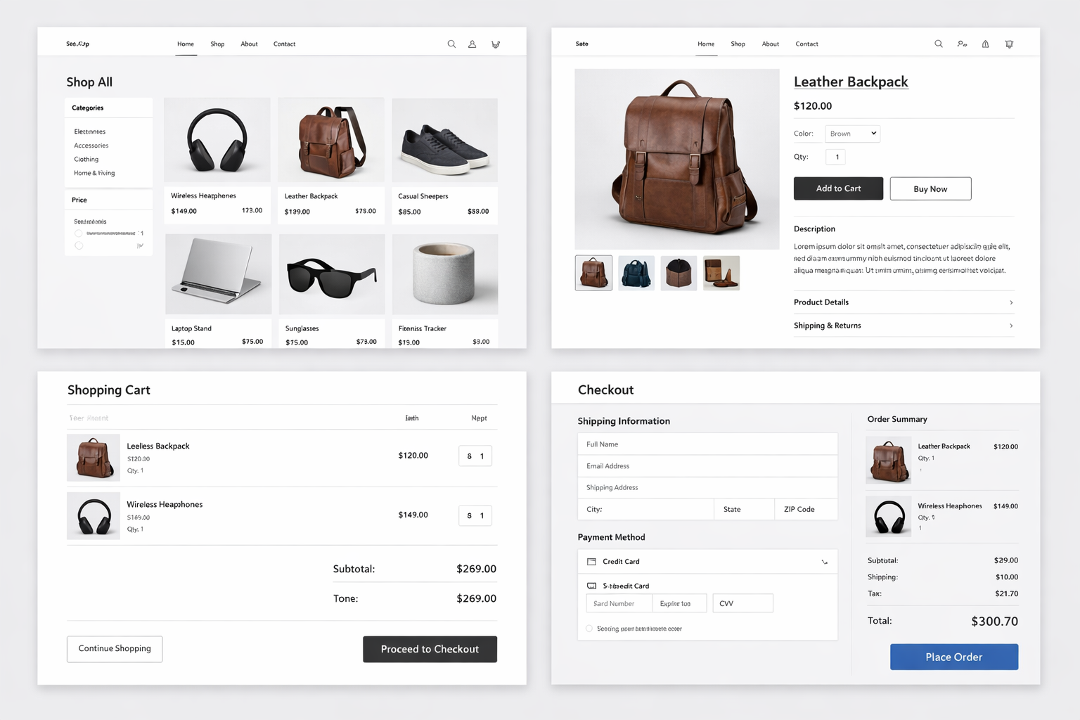 Product-focused websites including catalogs, listings, and payment-enabled flows, built using modern frameworks and third-party integrations where appropriate.